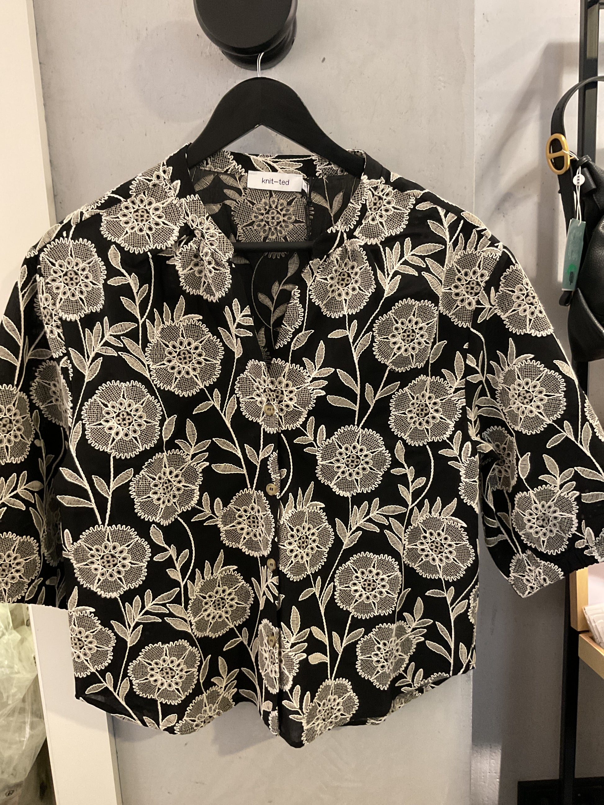 Knit-ted Penny Bluse Beige/Schwarz